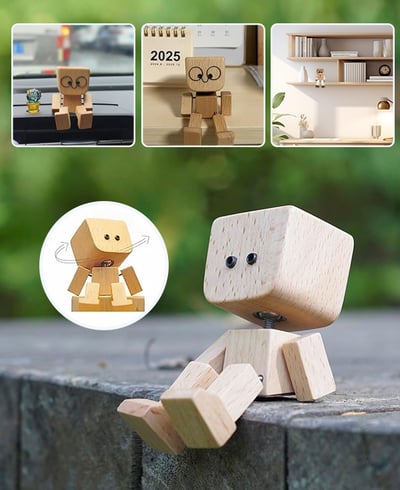Handcrafted from high-quality natural wood, this figurine brings a warm, rustic charm and a friendly presence to your car dashboard, office desk, or bookshelf.